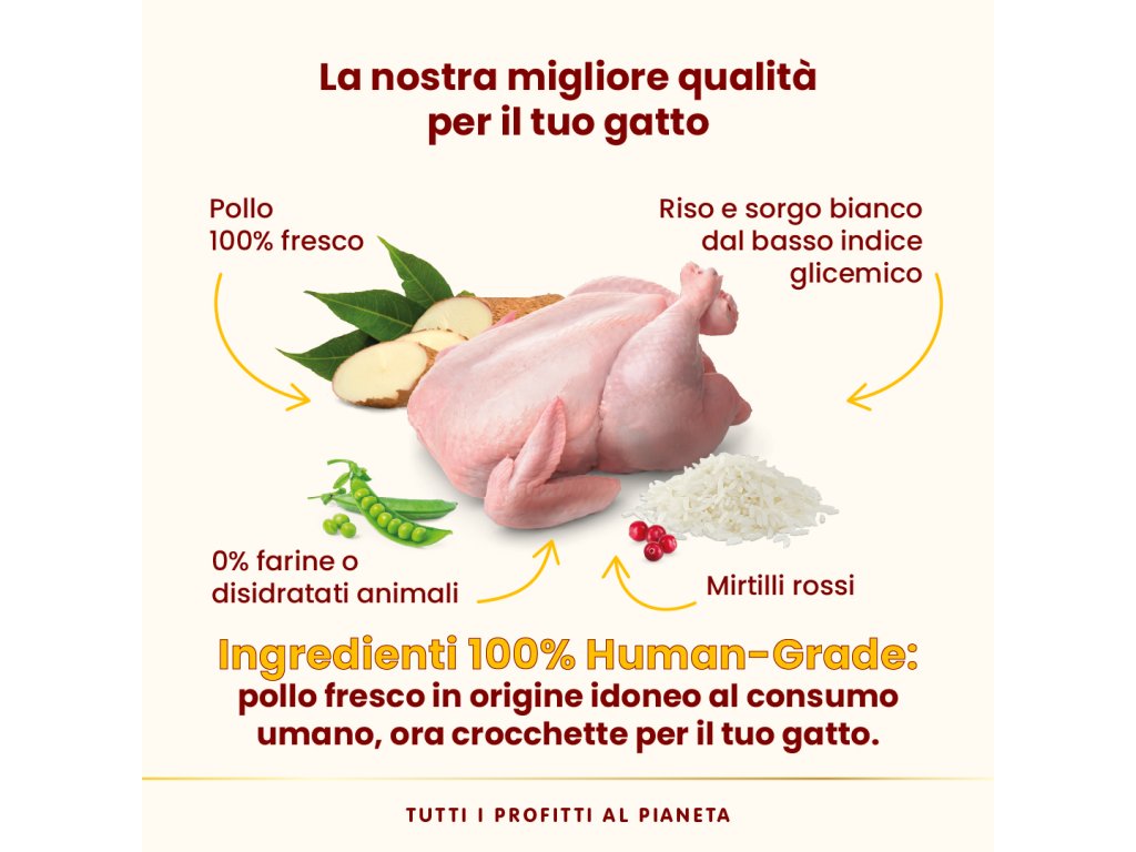 Prvé suché plnohodnotné krmivo pre sterilizované mačky pripravené v 100% HFC kvalite. Čo je HFC ? Skratka: human food chain... potravinarská norma = použité suroviny vhodné pre ľudskú konzumáciu. Pri tvorbe našich krmív, sú použité iba ušľachtilé druhy mäsa. Svalovina a päť vnútorných orgánov nič viac....!!! Kuriatka z voľného výbehu zaručujú najvyššiu kvalitu. Mäso je v BIO kvalite. Nízky obsah horčíka na zníženie možnosti tvorby kameňov; mierny obsah tuku a primeraný prísun vlakniny