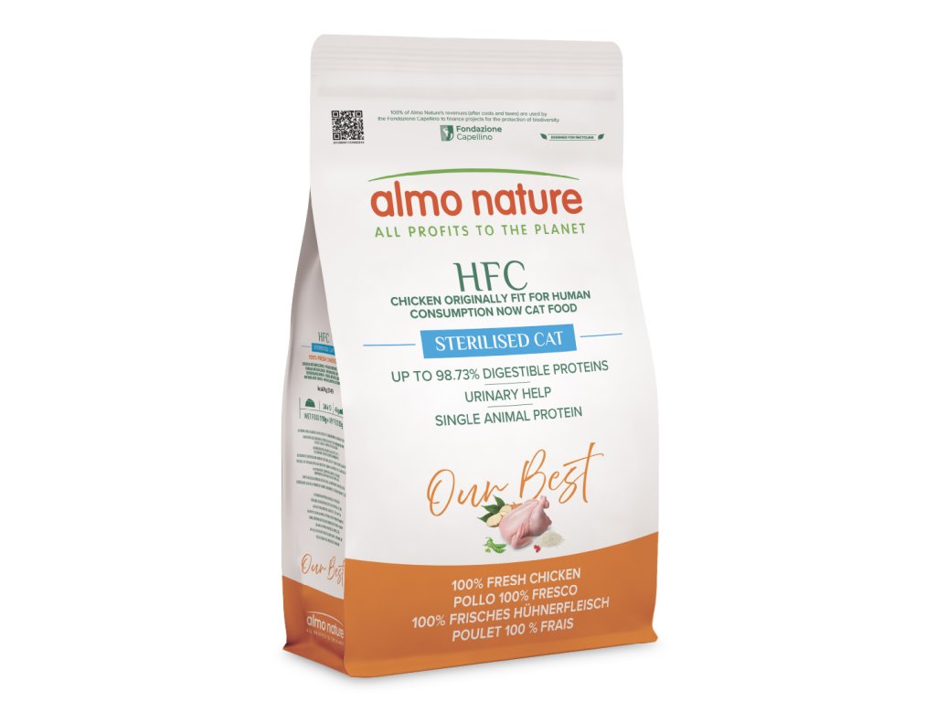 Všetky suroviny a čerstvé mäso je teda predurčené na ľudskú konzumáciu a teraz sa používa i pre štvornohých priateľov. HFC adult sterilized je vhodná pre dospelé ,ale i pre sterilizované mačky s protektivnou natural ochranou, urinary ciest. Almo Nature odporúča striedať ryby, červené a biele mäso, mokré a suché jedlá (granulky ) v orientačnom pomere 60%, respektíve 40%.