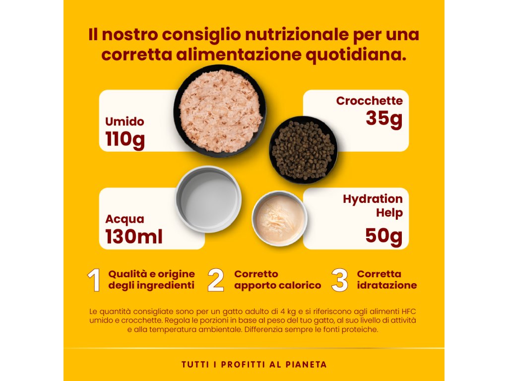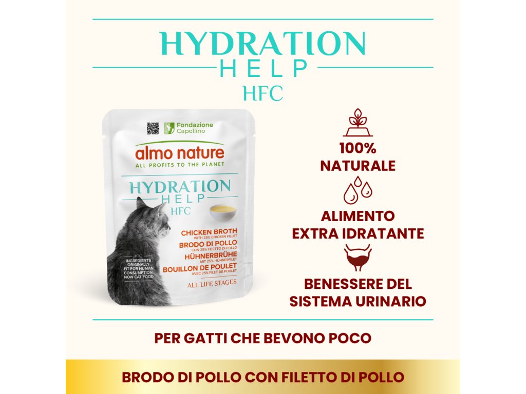 HFC cat hydration help je rada receptúr v ktorom je jednoznačná identifikácia pôvodu zložiek v receptúre. To zaručuje Vašej mačke to najlepšie na príjem živočíšnych bielkovín pre správnu vyváženosť stravy a psychofyzickú pohodu. Receptúra obsahuje taurín, ktorý pôsobí ako antioxidant. Všetko je upravené na pare s cieľom ochrany a zachovanie nutričných hodnôt a vôní,prospieva stavu srsti i kože. Produktová rada Almo Nature HFC používá mäso v humán food kvality = teraz ako potrava pre mačky. Používa sa iba svalovina /filety/ bez kože, kostí a vnutorných orgánov !