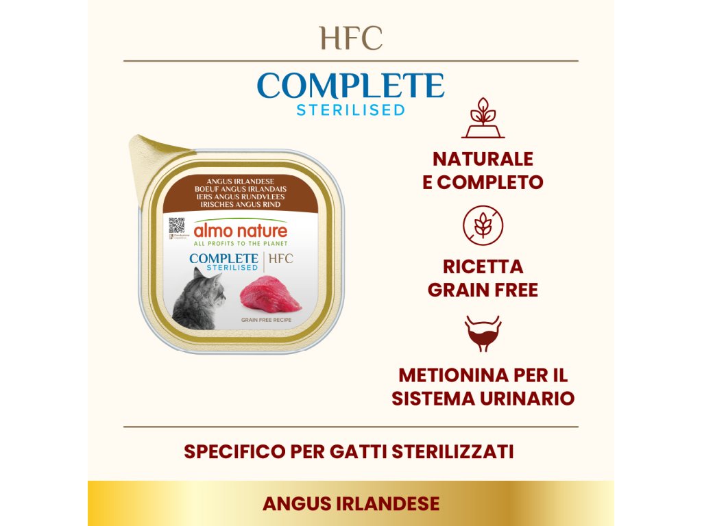 Almo Nature HFC complete sterilised cat 85g irské hovädzie