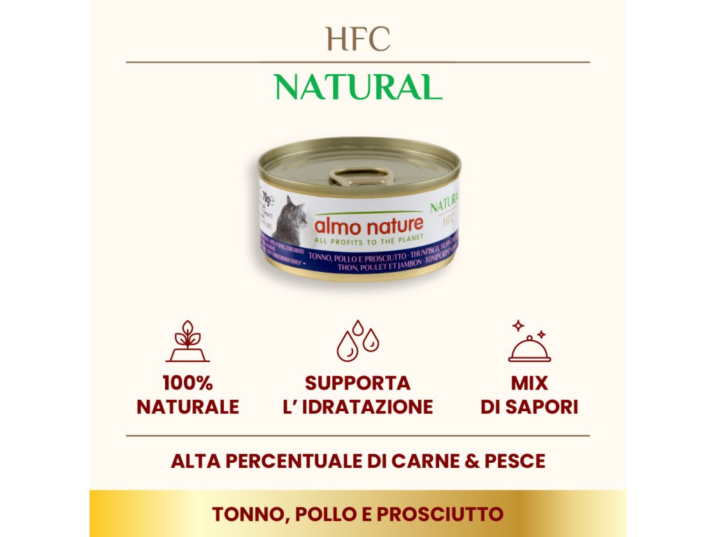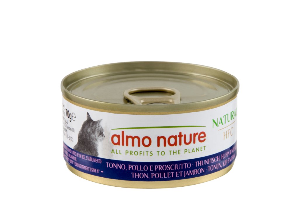 Almo Nature HFC Natural cat tuniak,kura+šunka 70g