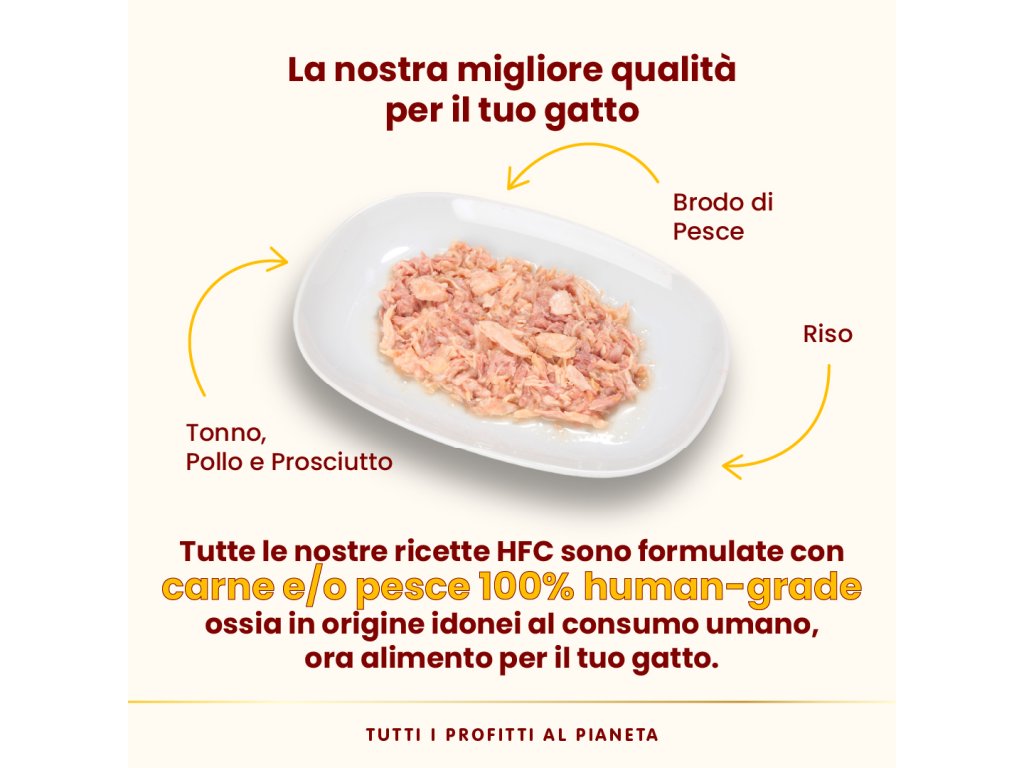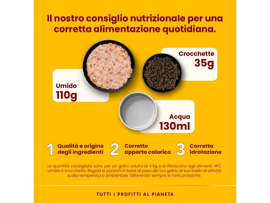 HFC je rada receptúr v ktorom jednoznačná identifikácia pôvodu zložiek zaručuje Vašej mačke to najlepšie. Príjem vysoko kvalitných živočíšnych bielkovín napomáha k psychofyzické pohode mačky. Vysoká nutričná straviteľnosť rybacieho proteinu 98,8% . Všetky suroviny v receptúre HFC, sú vhodné na ľudskú konzumáciu, teraz využité ako krmivo pre mačky. HFC Natural - je najslávnejšia konzerva alebo kapsička pre mačky v její tradičnej overenej receptúre. Vše upravené na pare s cieľom ochrana a zachovánie nutričných hodnot a vôní. Mastných kyselin Omega 3 a 6, ktoré posilňujú imunitu mačky, majú blahodarný vplyv na činnosť srdca a samozrejme prospieva stavu srsti i kože.