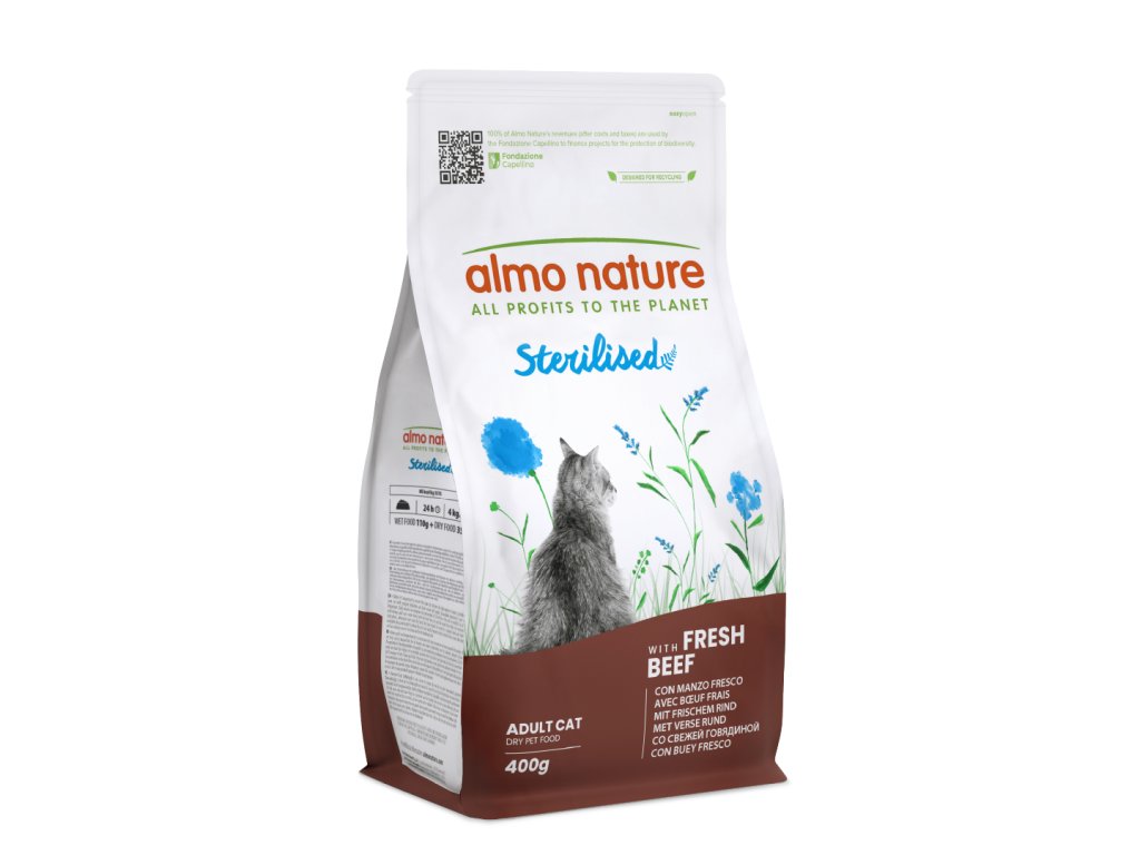 Maxi balenie pre sterilizovanú mačičku obsahuje: 2kg granule pre sterilizované mačky - príchuť hovädzie 3x 85g Almo Nature HFC functional sterilised cat čerstvé...